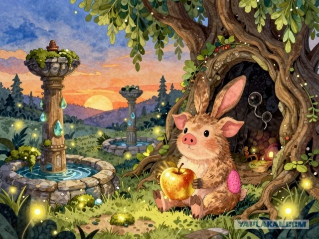 Была у Зайцехрюка одна тайная мечта. Он слышал от Старой Выдры, что под корнями Древней Ивы скрывается вход в Мир Колодцев. Говорили, что колодцы там не простые, а эховые. Бросишь в один жёлудь — вылетает песня. Бросишь в другой камушек — вылетает запах мёда.