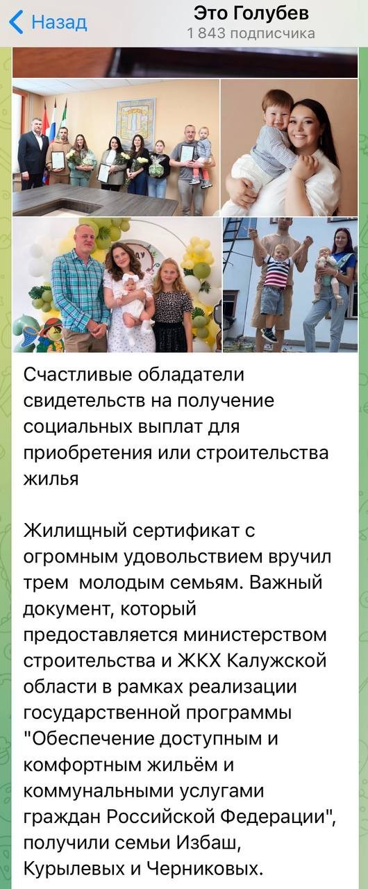 В Калужской области тоже выдали жилищные сертификаты русским многодетным семьям